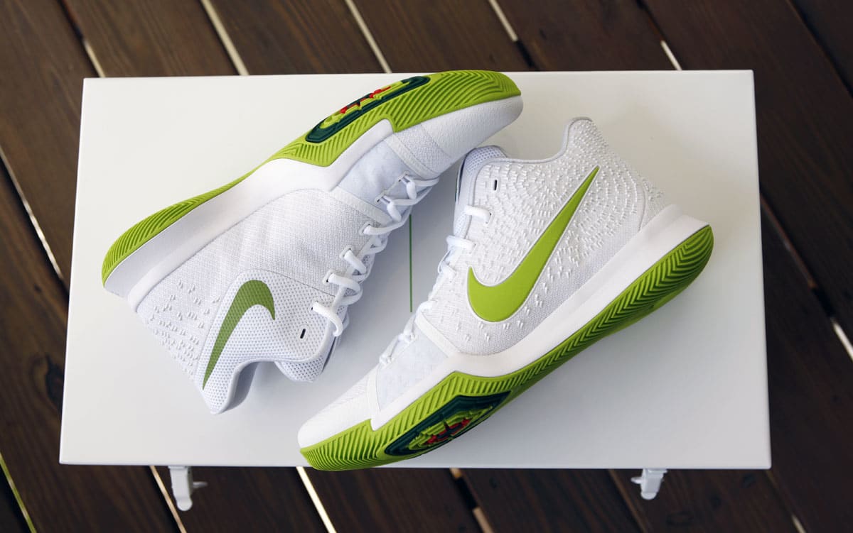 As a result of his fine play in the postseason, Mountain Dew has teamed with Nike to create a limited edition colorway for Kyrie Irving‘s signature shoe, the Kyrie Irving 3.